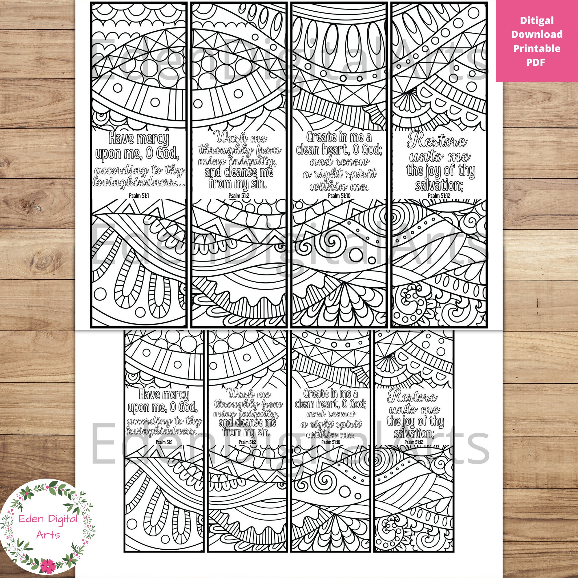 Psalm 51 Coloring Bible Verse Bookmarks Kjv Scripture Prayer Etsy